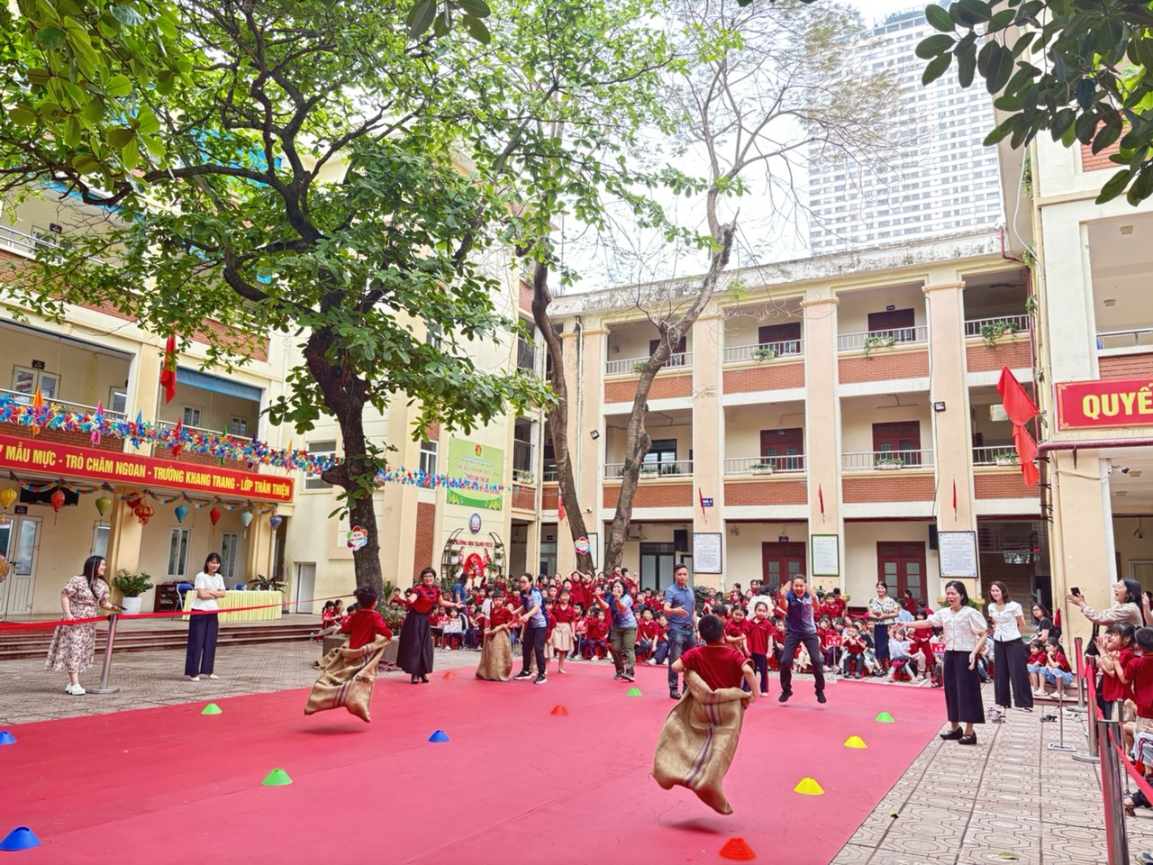 Chương trình thu hút đông đảo học sinh tham gia trong không khí vui tươi, hào hứng. Tại ngày hội, các em được tham gia nhiều nội dung phong phú như đồng diễn thể dục, trò chơi vận động, kéo co, nhảy bao bố và các hoạt động tập thể. Những phần thi không chỉ giúp các em rèn luyện sức khỏe mà còn tạo cơ hội giao lưu, đoàn kết, phát huy tinh thần tự tin, năng động.