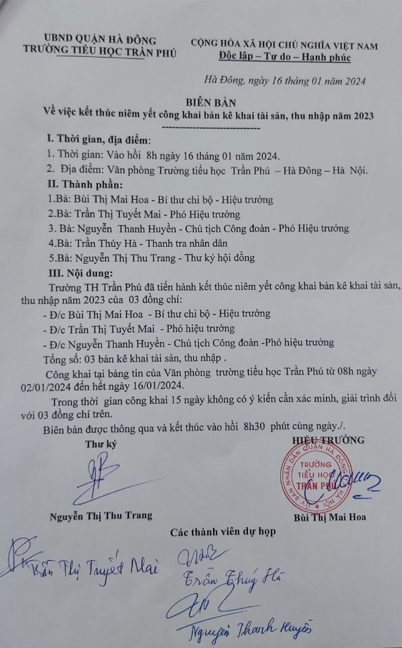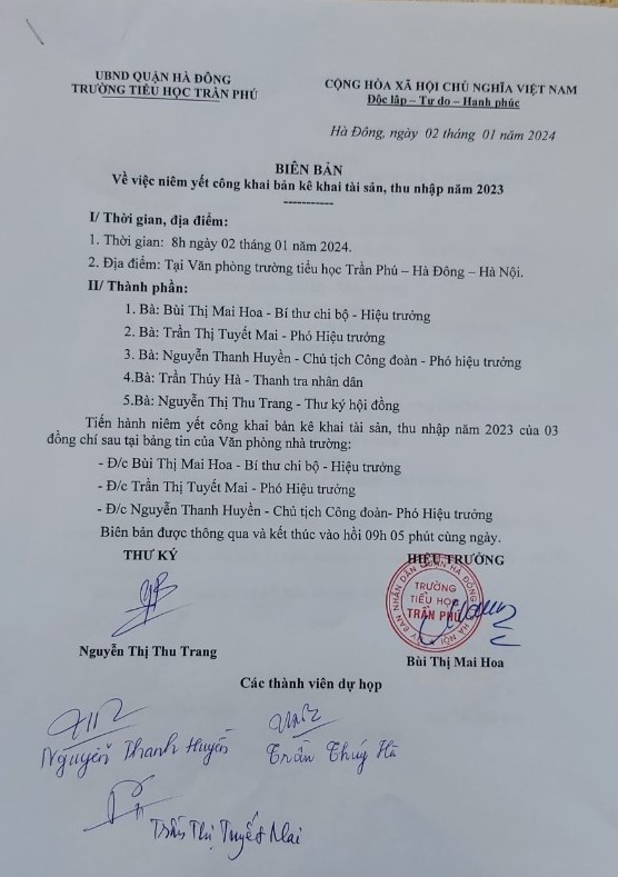 Trường tiểu học Trần Phú tiến hành niêm yết công khai tài sản, thu nhập năm 2023.