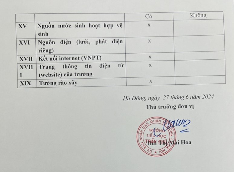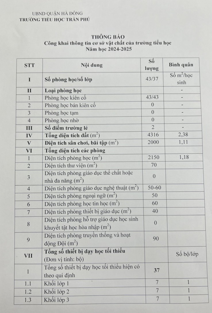 Ngày 27/6/2024 trường TH Trần Phú thực hiện niêm yết công khai thông tin CSVC của nhà trường.