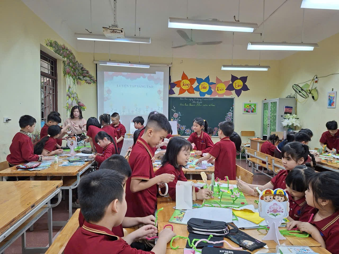 Tiết học mang đến cho các em một không gian sáng tạo tự do, nơi trí tưởng tượng được bay cao và cảm xúc được thể hiện một cách tự nhiên qua từng nét vẽ, mảng màu. Mỗi em một ý tưởng, một cách thể hiện riêng, tạo nên những bức tranh đa dạng và độc đáo, làm cho tiết học trở nên sinh động và thú vị hơn bao giờ hết.