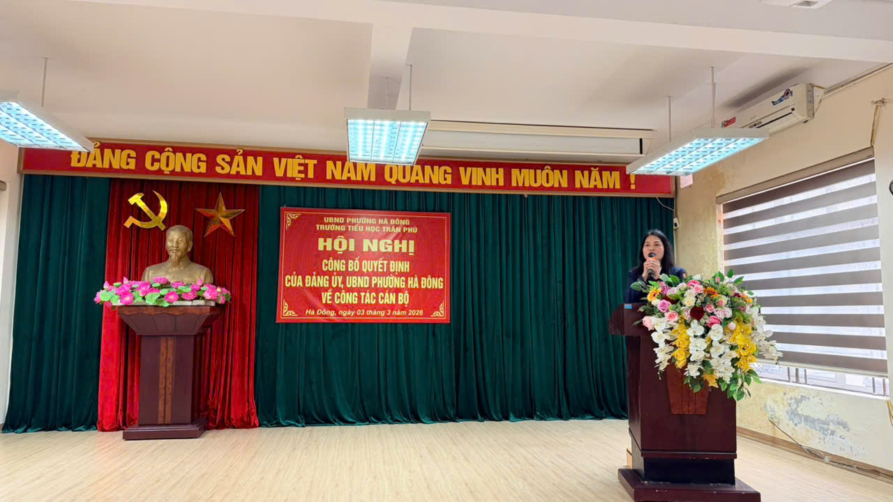 Ngày 03/03/2026, Trường Tiểu học Trần Phú long trọng tổ chức Hội nghị công bố Quyết định của Đảng ủy và UBND phường Hà Đông về công tác cán bộ.