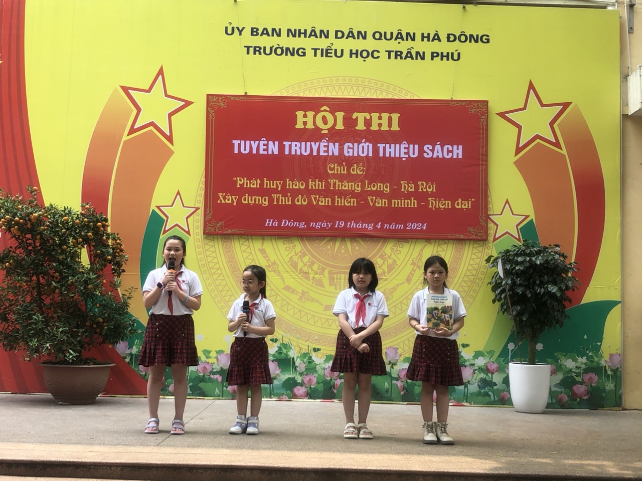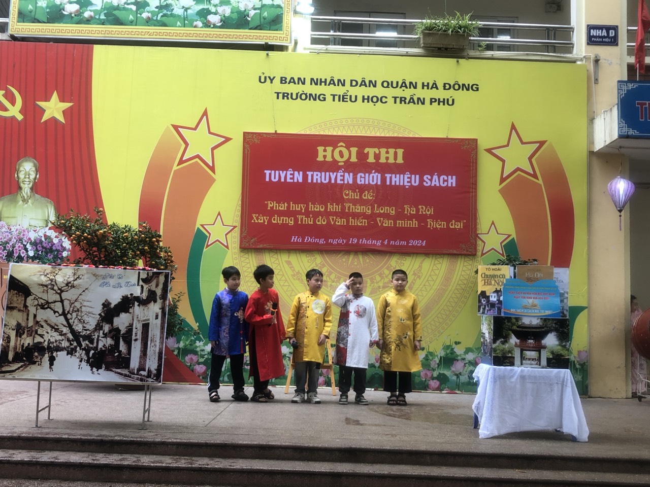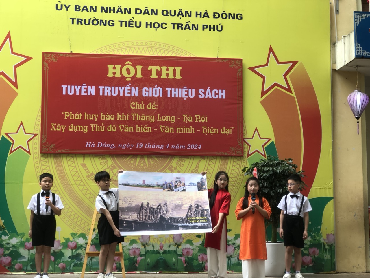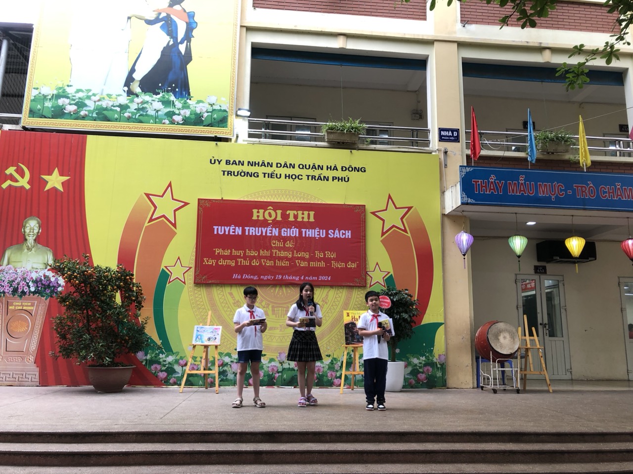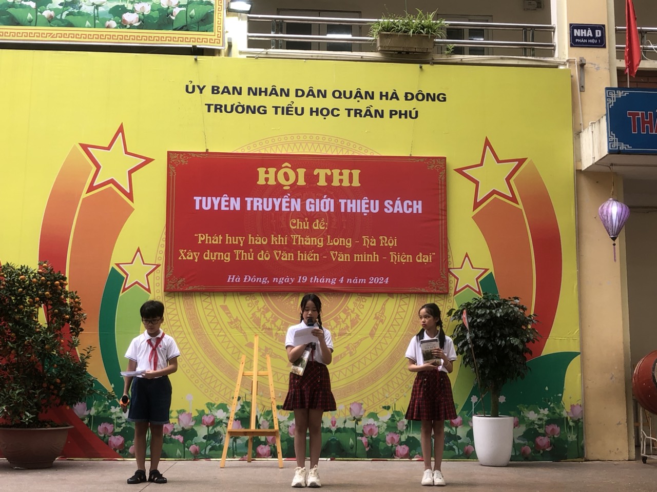 Hôm nay, ngày 19/4/2024 trường TH Trần Phú tổ chức hội thi tuyên truyền giới thiệu sách với Chủ đề: "Phát huy hào khí Thăng Long - Hà Nội, Xây dựng Thủ đô Văn hiến - Văn mình - Hiện đại"