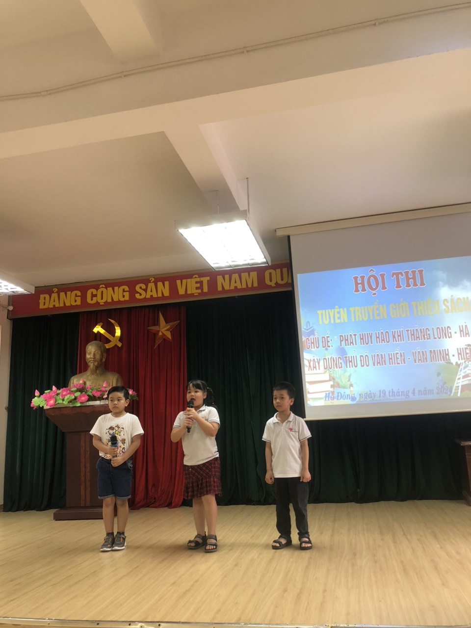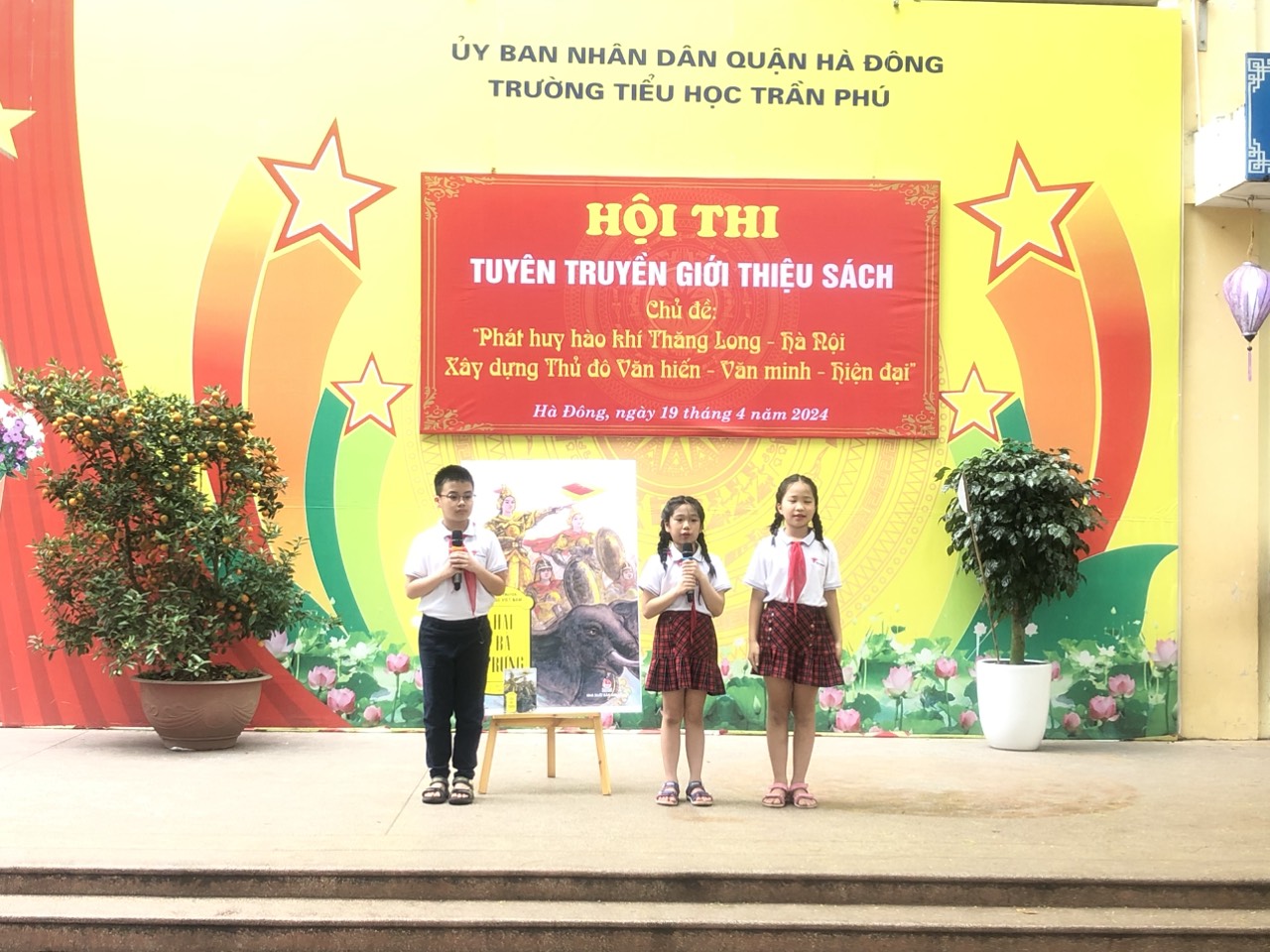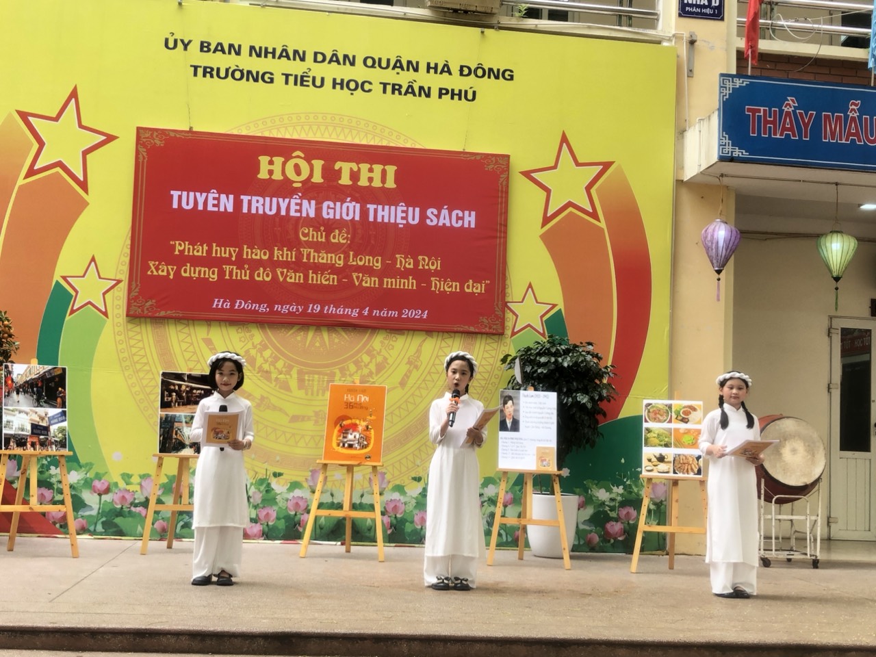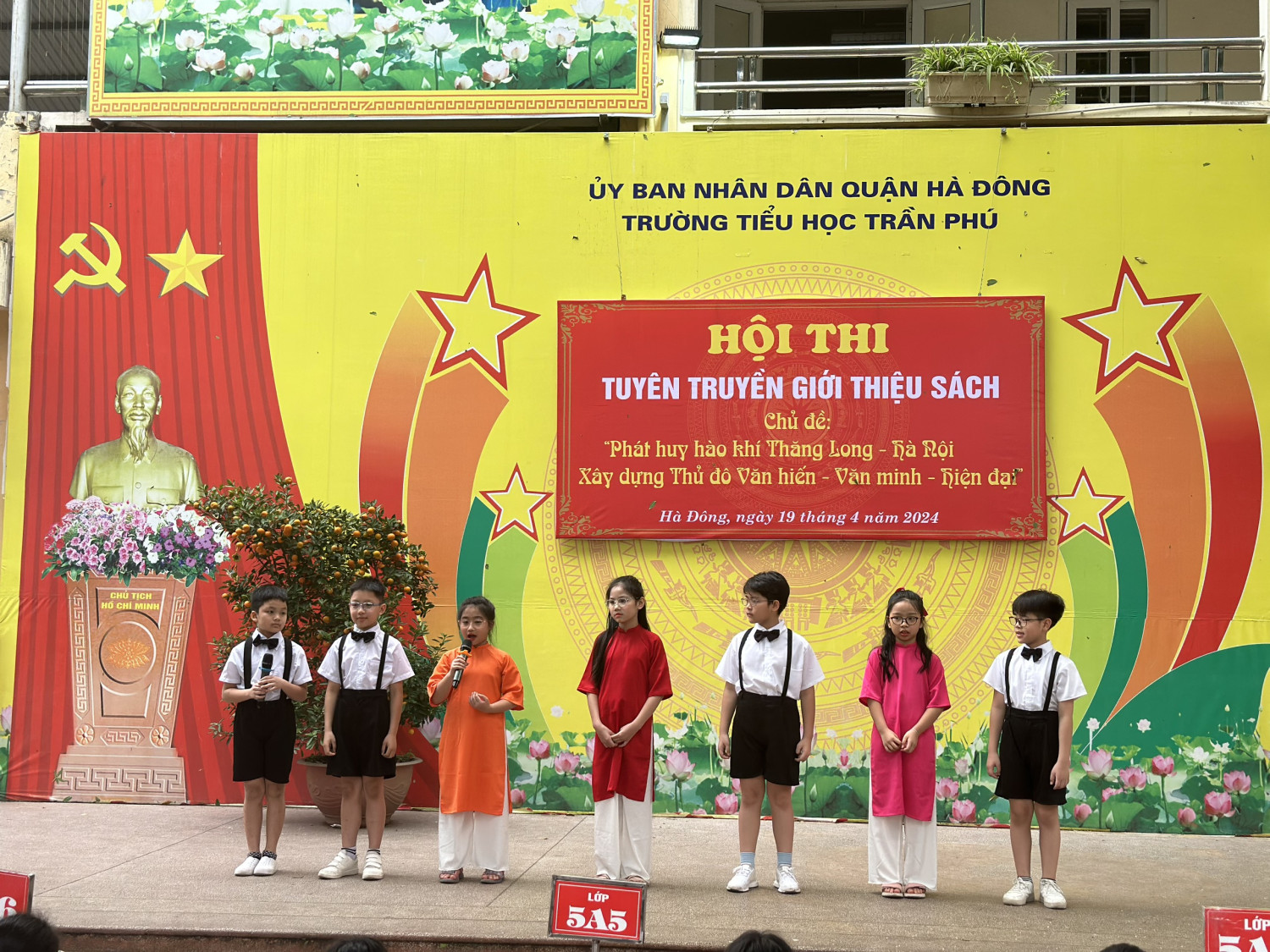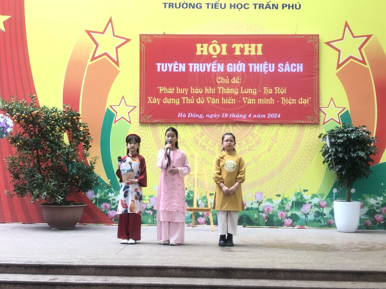 Hôm nay, ngày 19/4/2024 trường TH Trần Phú tổ chức hội thi tuyên truyền giới thiệu sách với Chủ đề: "Phát huy hào khí Thăng Long - Hà Nội, Xây dựng Thủ đô Văn hiến - Văn mình - Hiện đại"