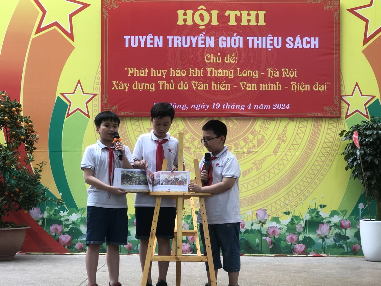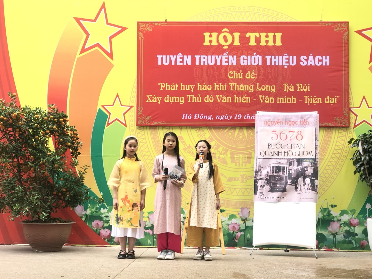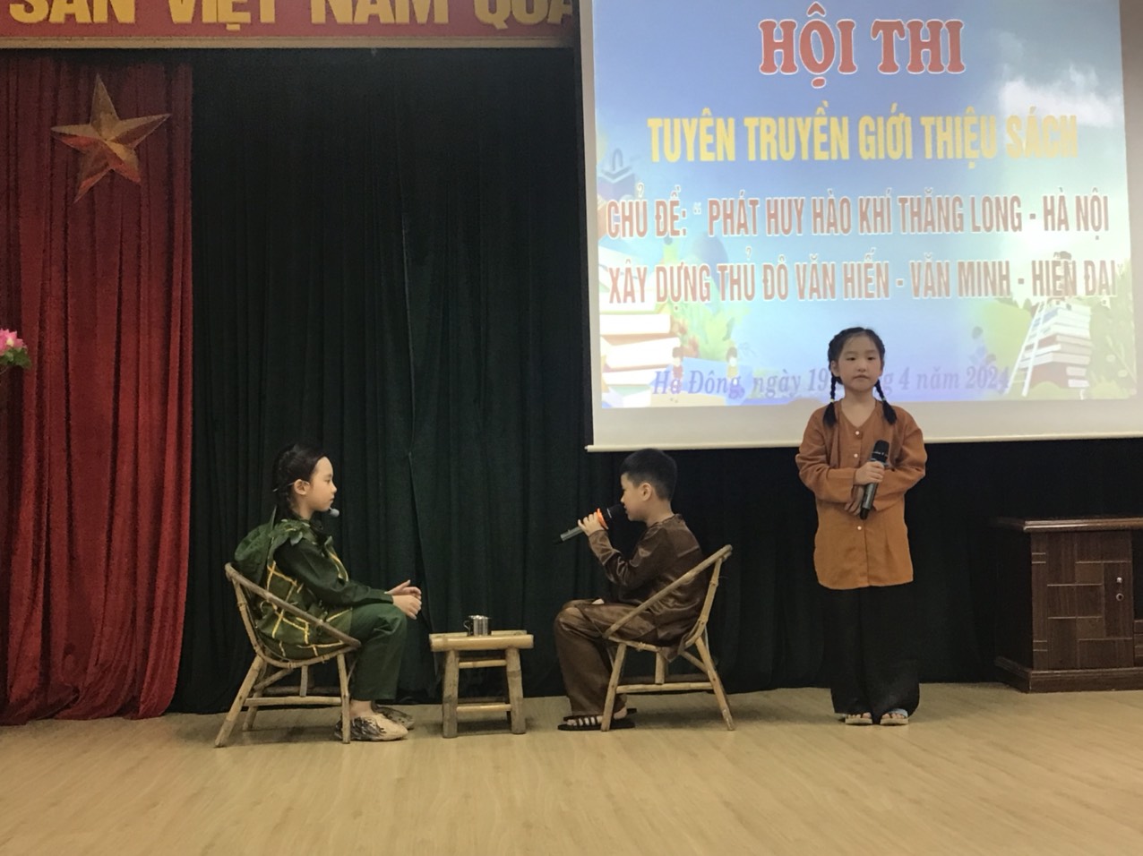 Phần thi Tuyên truyền giới thiệu sách, các lớp đã lựa chọn các tác phẩm bám sát chủ đề Hội thi, minh họa sáng tạo, hấp dẫn. Các em đã thể hiện mình không chỉ là những tuyên truyền viên nhỏ tuổi tài năng mà còn là các diễn viên “nhí” với khả năng diễn xuất tài tình hóa thân vào nội dung từng cuốn sách. Nhiều tiết mục dành trọn tình cảm yêu quý của Ban giám khảo, gây xúc động tại Hội thi. Nhờ sự quan tâm, tạo điều kiện về mọi mặt của Ban Giám Hiệu nhà trường, quý BPH nên các lớp tham gia đầy nhiệt huyết, trách nhiệm; đặc biệt là tinh thần vượt khó, kiên trì xây dựng, giữ vững phong trào của đội ngũ cán bộ làm công tác thư viện, các thầy cô giáo, thầy phụ trách Đoàn, Đội tại nhà trường góp phần làm nên thành công của Hội thi. Hội thi đã tạo cho các em học sinh có một sân chơi, hoạt động văn hóa ý nghĩa, giúp các em học sinh có cơ hội được giao lưu, học hỏi và thêm yêu thích các tác phẩm văn học nghệ thuật, cảm thụ những giá trị nhân văn trong từng tác phẩm; có kỹ năng tuyên truyền, giới thiệu sách, kĩ năng dẫn chương trình, kỹ năng rèn luyện bản lĩnh, sự tự tin khi biểu diễn trên sân khấu lớn. Hội thi cũng giúp các em ý thức được vai trò và nhiệm vụ của mình đối với các thế hệ cha anh đi trước, tích cực học tập tốt, rèn luyện đạo đức tốt để xây dựng Thủ đô, đất nước ngày càng giàu đẹp, phồn vinh. Trong hội thi có những tiết mục văn nghệ vô cùng đặc sắc của các bạn học sinh mang đến cho chương trình.