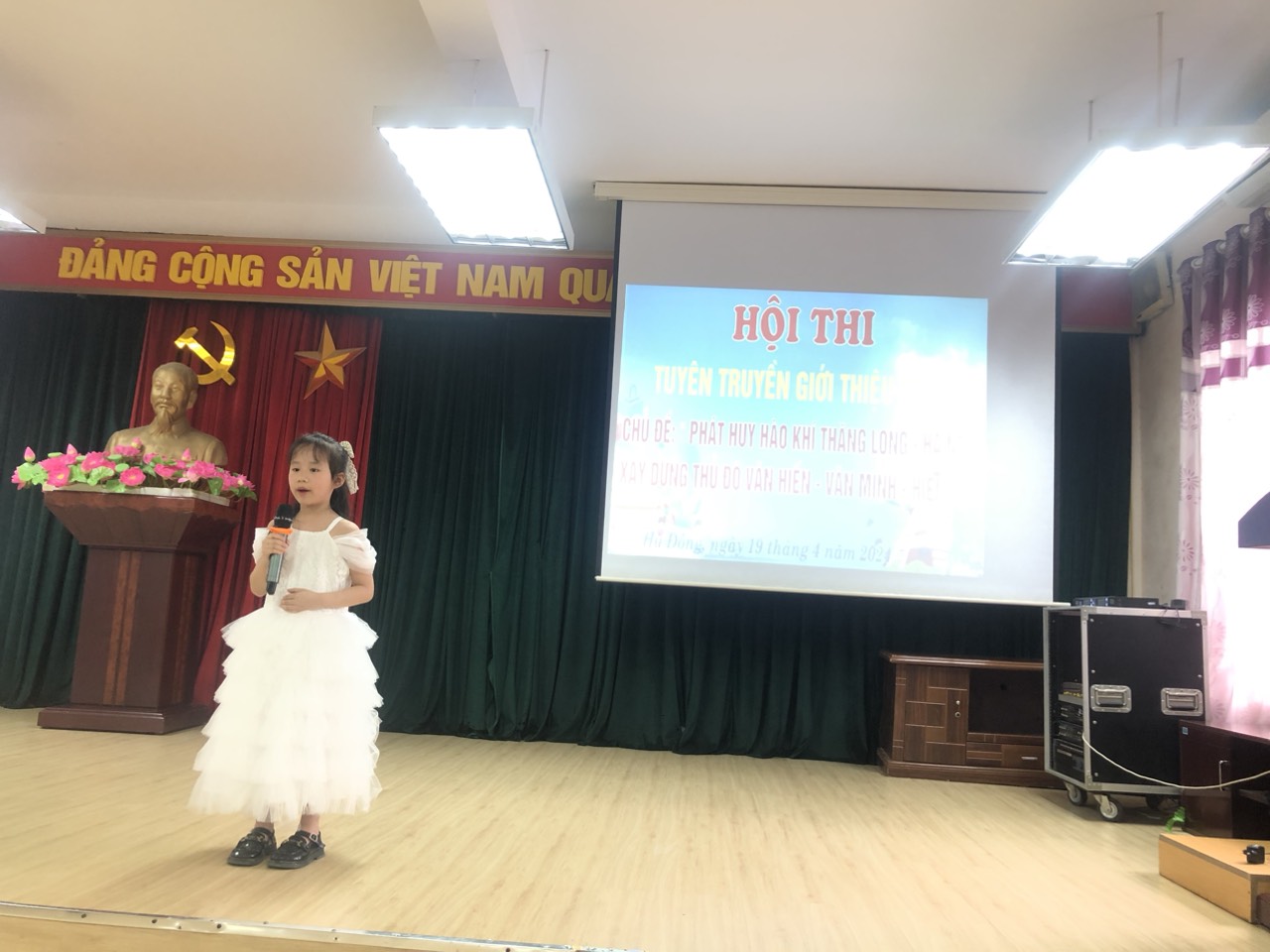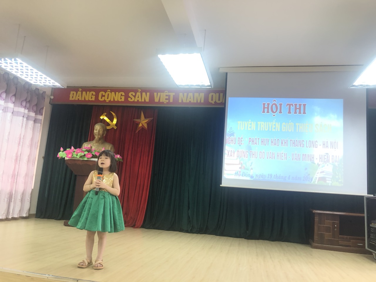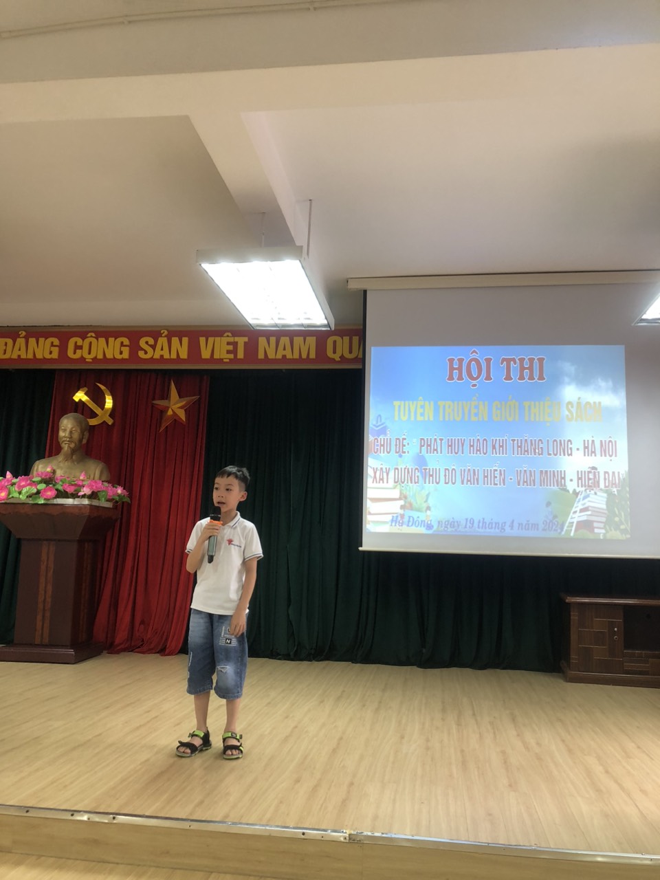 Phần thi Tuyên truyền giới thiệu sách, các lớp đã lựa chọn các tác phẩm bám sát chủ đề Hội thi, minh họa sáng tạo, hấp dẫn. Các em đã thể hiện mình không chỉ là những tuyên truyền viên nhỏ tuổi tài năng mà còn là các diễn viên “nhí” với khả năng diễn xuất tài tình hóa thân vào nội dung từng cuốn sách. Nhiều tiết mục dành trọn tình cảm yêu quý của Ban giám khảo, gây xúc động tại Hội thi. Nhờ sự quan tâm, tạo điều kiện về mọi mặt của Ban Giám Hiệu nhà trường, quý BPH nên các lớp tham gia đầy nhiệt huyết, trách nhiệm; đặc biệt là tinh thần vượt khó, kiên trì xây dựng, giữ vững phong trào của đội ngũ cán bộ làm công tác thư viện, các thầy cô giáo, thầy phụ trách Đoàn, Đội tại nhà trường góp phần làm nên thành công của Hội thi. Hội thi đã tạo cho các em học sinh có một sân chơi, hoạt động văn hóa ý nghĩa, giúp các em học sinh có cơ hội được giao lưu, học hỏi và thêm yêu thích các tác phẩm văn học nghệ thuật, cảm thụ những giá trị nhân văn trong từng tác phẩm; có kỹ năng tuyên truyền, giới thiệu sách, kĩ năng dẫn chương trình, kỹ năng rèn luyện bản lĩnh, sự tự tin khi biểu diễn trên sân khấu lớn. Hội thi cũng giúp các em ý thức được vai trò và nhiệm vụ của mình đối với các thế hệ cha anh đi trước, tích cực học tập tốt, rèn luyện đạo đức tốt để xây dựng Thủ đô, đất nước ngày càng giàu đẹp, phồn vinh. Trong hội thi có những tiết mục văn nghệ vô cùng đặc sắc của các bạn học sinh mang đến cho chương trình.