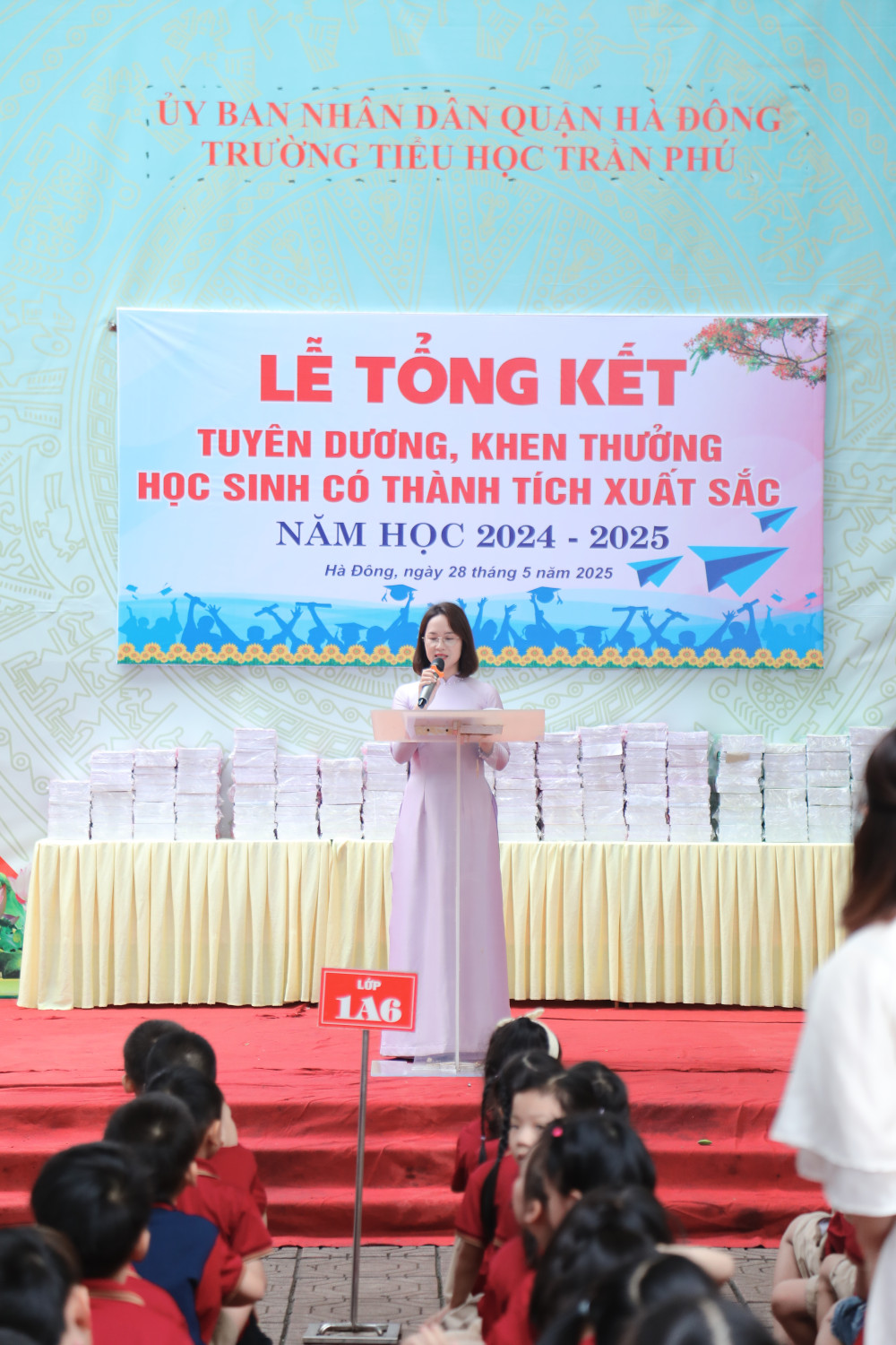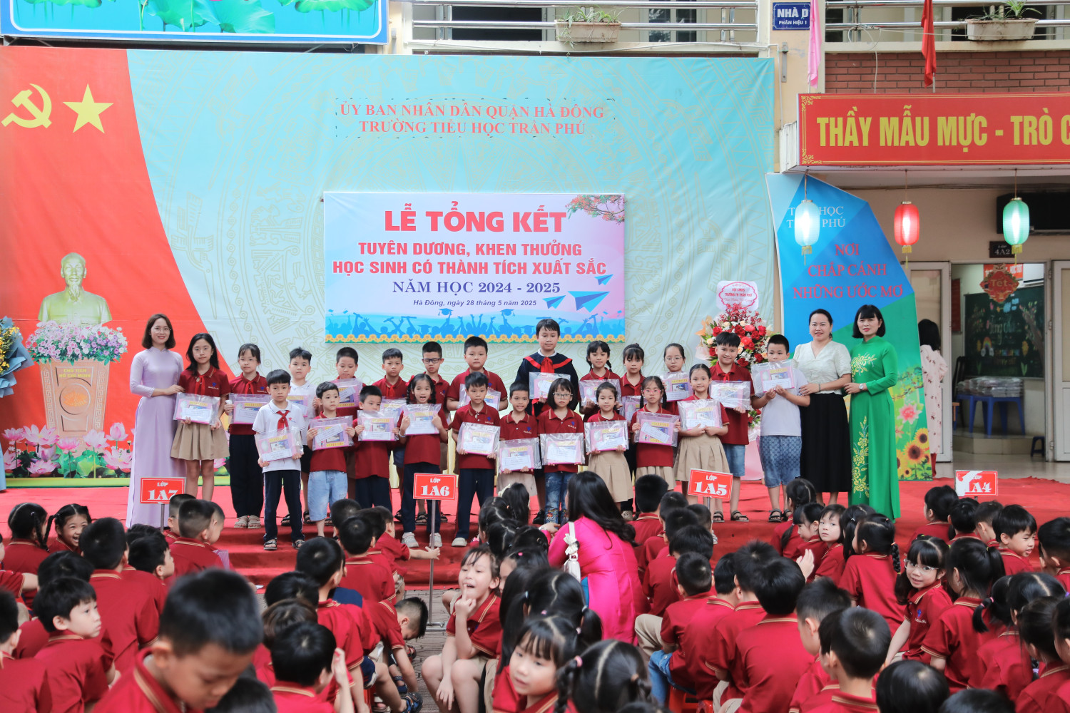 Hòa trong không khí rộn ràng của những ngày cuối năm học, sáng ngày 28/5/2025, Trường Tiểu học Trần Phú long trọng tổ chức Lễ tổng kết và tuyên dương khen thưởng năm học 2024–2025 nhằm nhìn lại chặng đường một năm phấn đấu, nỗ lực không ngừng của thầy và trò nhà trường. Buổi lễ có sự hiện diện của Ban đại diện cha mẹ học sinh cùng toàn thể cán bộ, giáo viên và học sinh của nhà trường.