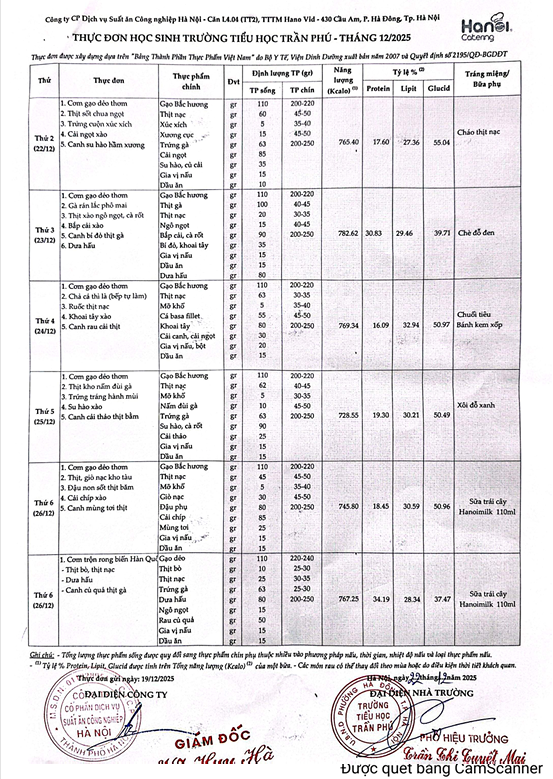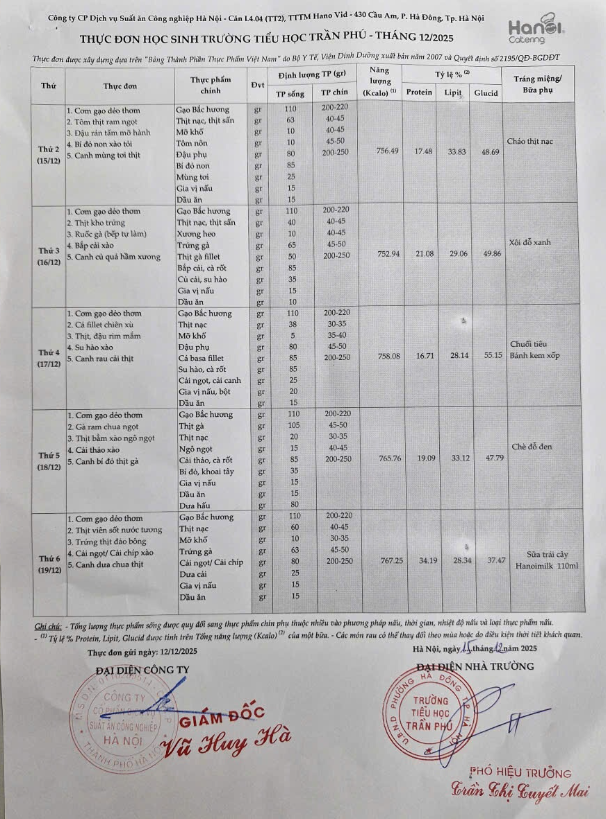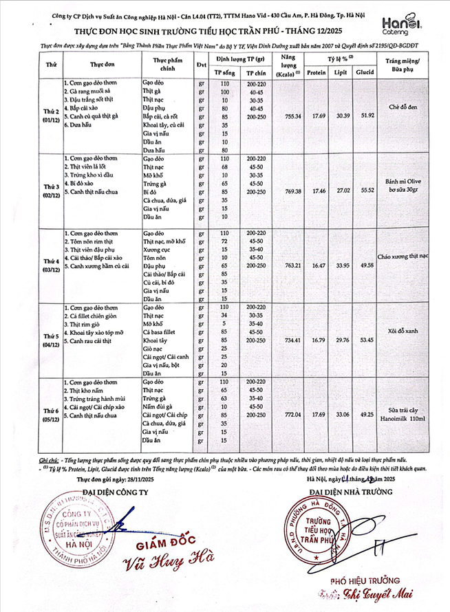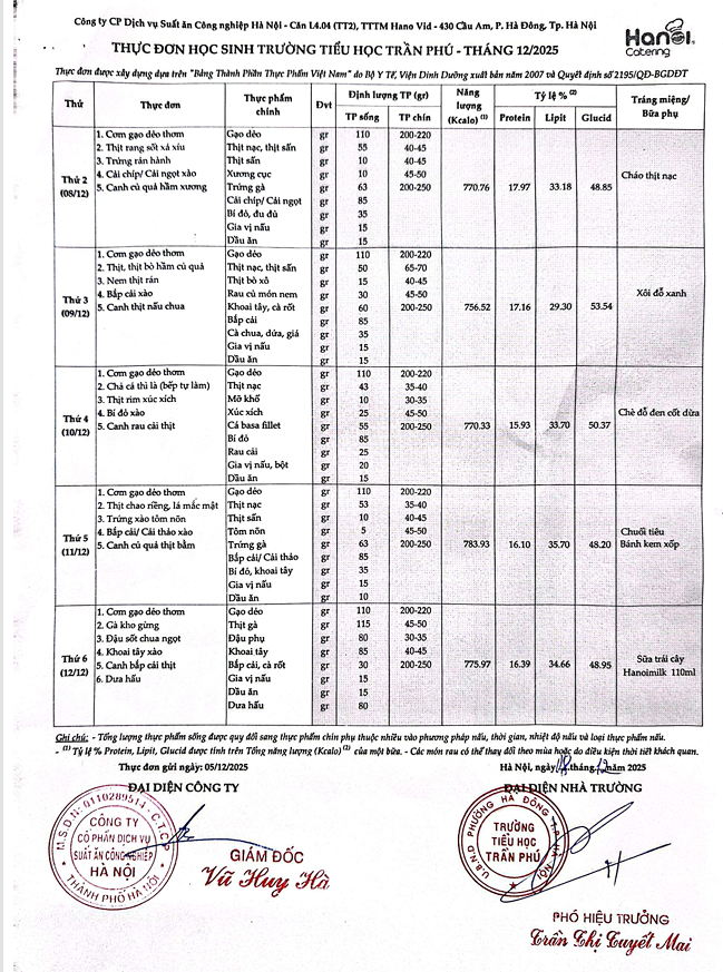 Thực đơn tháng 12 năm 2025