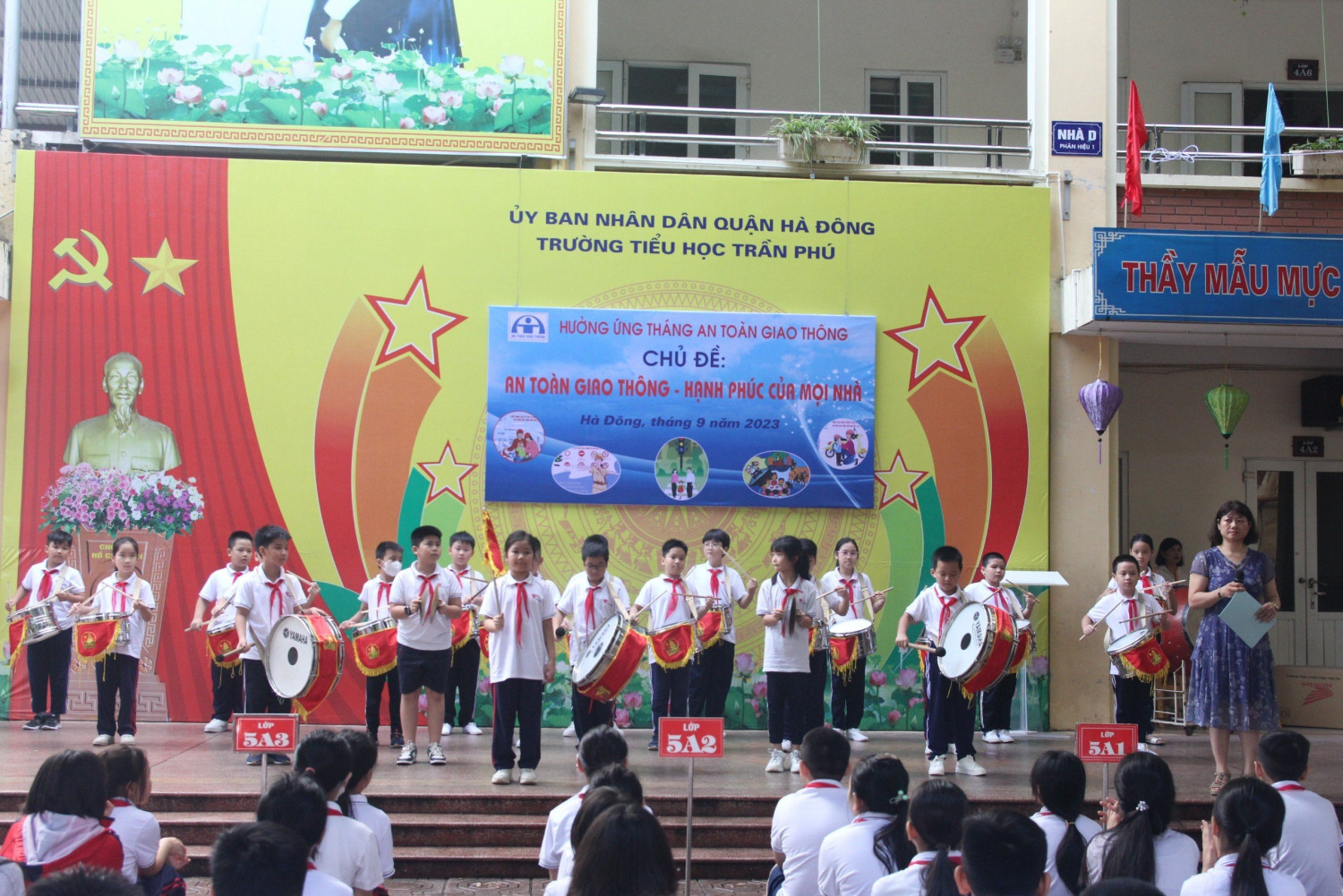 Trường tiểu học Trần Phú hưởng ứng tháng An toàn giao thông với chủ đề An toàn giao thông - hạnh phúc mọi nhà.