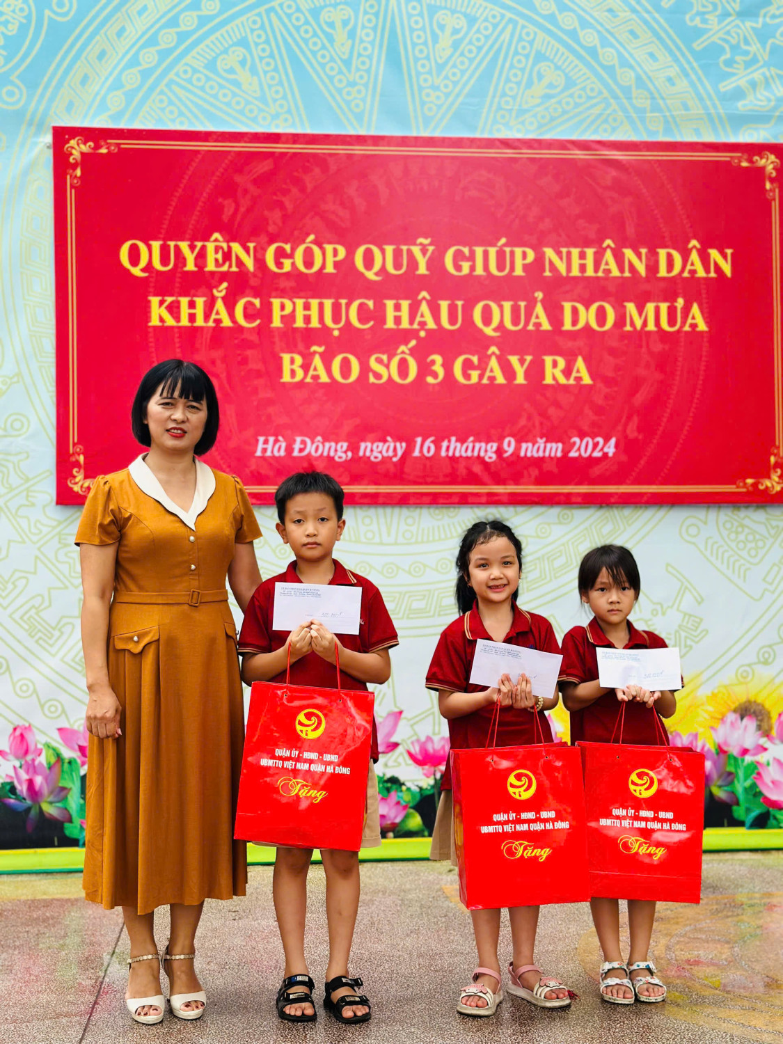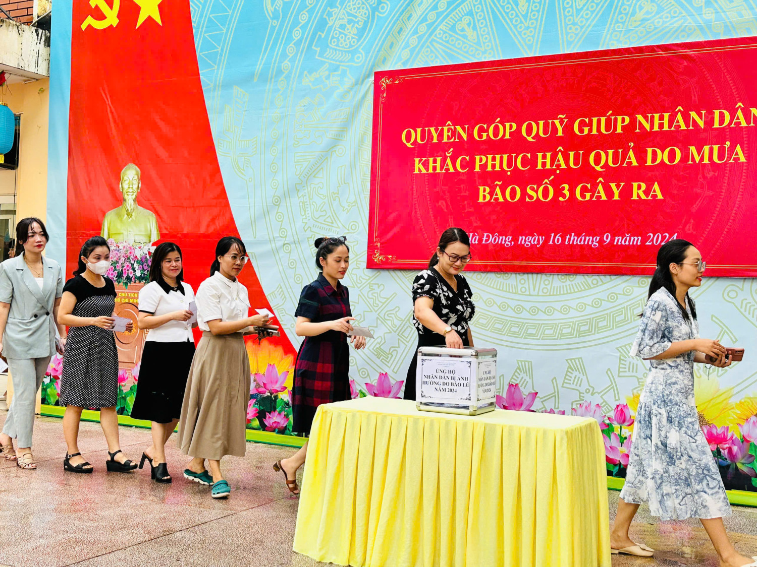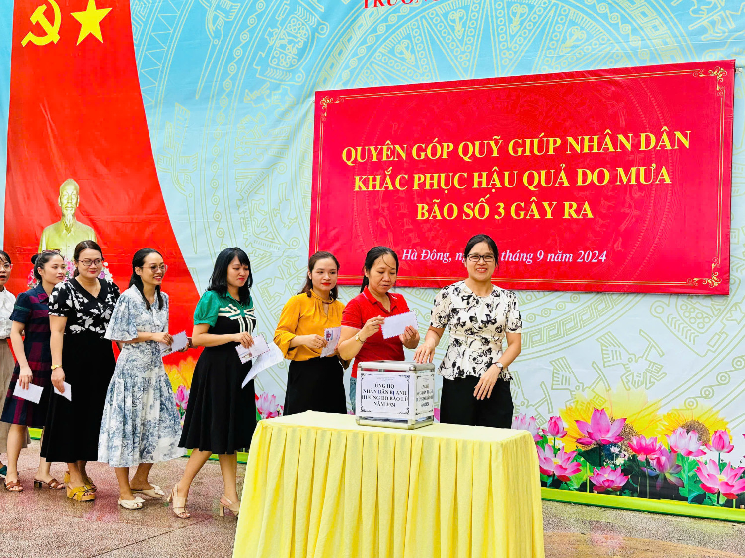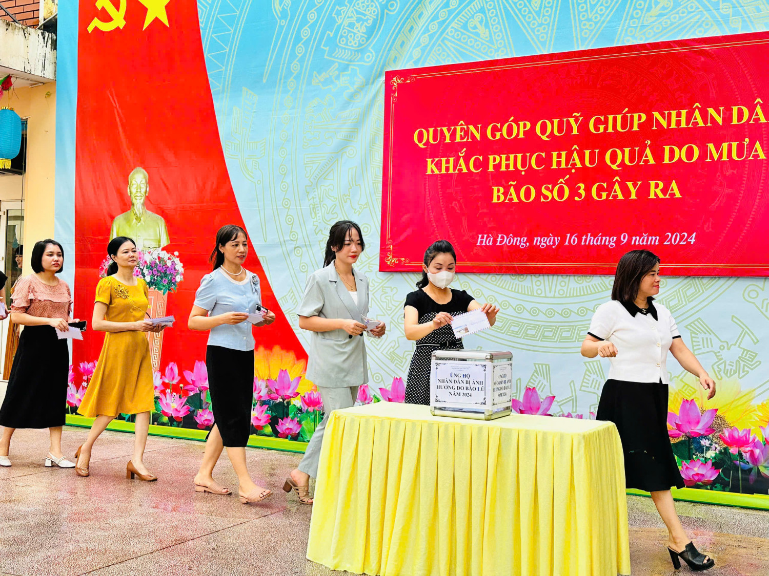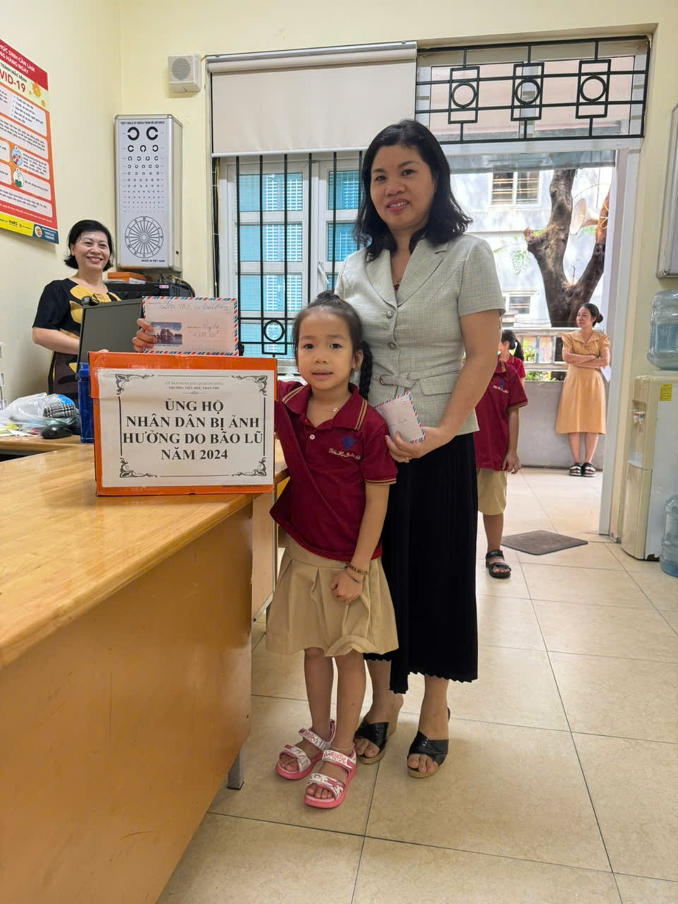 Với tinh thần trách nhiệm, tấm lòng nhân ái: “Lá lành đùm lá rách, thương người như thể thương thân, nhường cơm sẻ áo, ….” Trường tiểu học Trần Phú – Q. Hà Đông cùng đồng bào cả nước hướng về nhân dân các tỉnh miền Bắc. Mỗi đ/c CB, GV, NV ủng hộ ít nhất một ngày lương. Mỗi em học sinh ủng hộ tối thiểu 10.000 đồng để sẻ chia, giúp đỡ đồng bào khắc phục hậu quả do mưa lũ gây ra, góp phần cùng với Đảng, Nhà nước nhanh chóng khôi phục sản xuất và ổn định đời sống của nhân dân; giúp các bạn học sinh của chúng ta mau chóng được trở lại trường học.