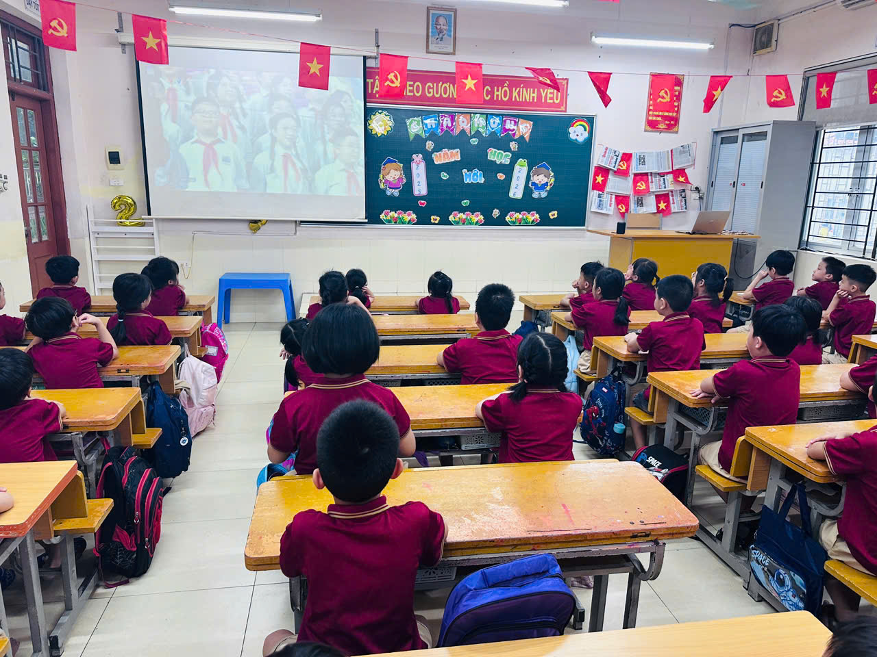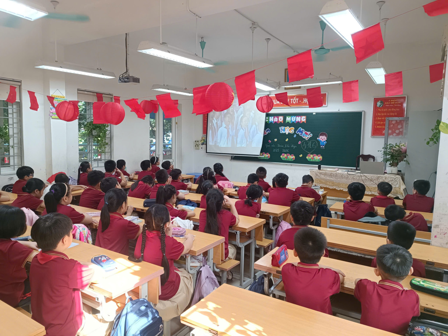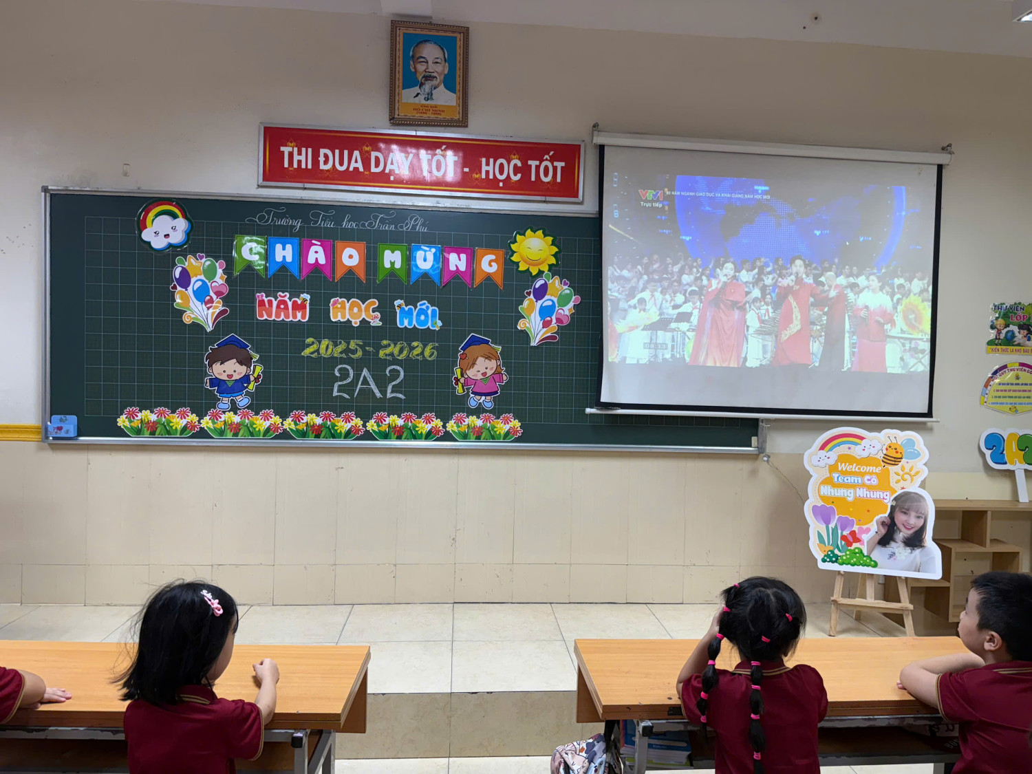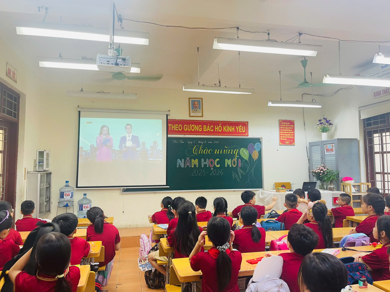Trong niềm hân hoan của ngày hội toàn dân đưa trẻ đến trường, nhà trường đã tổ chức nhiều hoạt động ý nghĩa: trao biển tên lớp cho học sinh lớp 1, trang trọng với nghi thức trao Cờ truyền thống, sôi nổi với các tiết mục văn nghệ chào mừng rực rỡ sắc màu và đặc biệt là nghi thức đánh trống khai giảng năm học 2025 – 2026 do Cô giáo Bùi Thị Mai Hoa – Hiệu trưởng nhà trường thực hiện, chính thức mở ra một năm học mới đầy quyết tâm và hy vọng. Tiếp nối chương trình, thầy và trò Trường Tiểu học Trần Phú cũng vinh dự được theo dõi trực tuyến Lễ kỷ niệm 80 năm thành lập Bộ Quốc gia Giáo dục – nay là Bộ Giáo dục và Đào tạo, gắn với lễ khai giảng năm học mới do Bộ tổ chức. Đây là sự kiện chính trị – xã hội quan trọng, là dịp để đội ngũ cán bộ, giáo viên và học sinh nhà trường thêm tự hào, tiếp tục nỗ lực trong dạy và học, góp phần xây dựng Trường Tiểu học Trần Phú ngày càng phát triển, xứng đáng với truyền thống vẻ vang của ngành Giáo dục Thủ đô và đất nước.