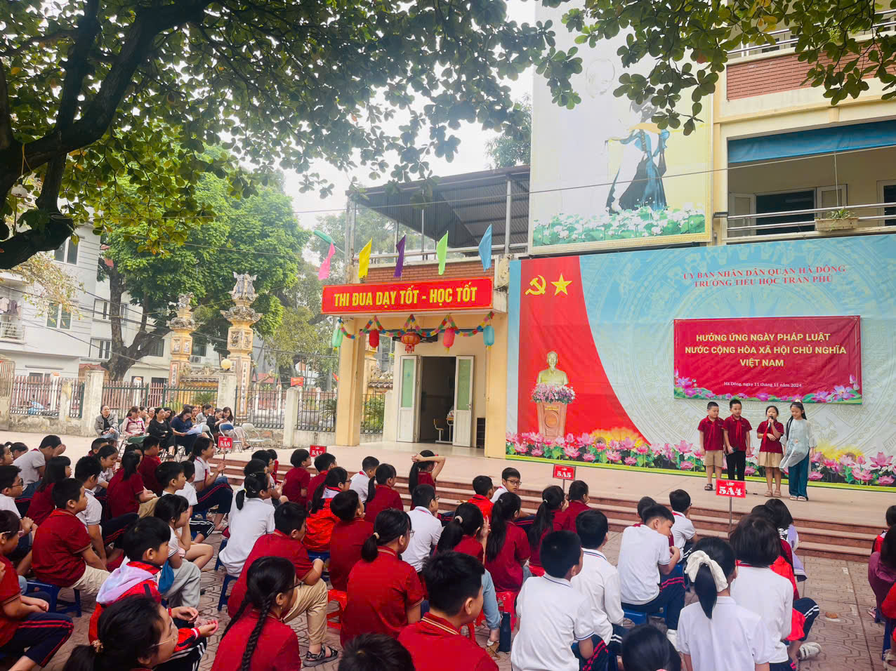 Ngày 11/11, Trường tiểu học Trần Phú - Quận Hà Đông tổ chức hưởng ứng ‘Ngày Pháp luật nước Cộng hòa xã hội chủ nghĩa Việt Nam năm 2024’. Đây là hoạt động thường niên của nhà trường nhằm tuyên truyền, phổ biến những giá trị cốt lõi của pháp luật trong môi trường giáo dục. Từ đó, góp phần xây dựng một xã hội văn minh, kỷ cương và phát triển.