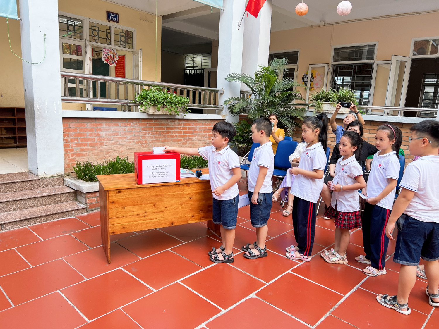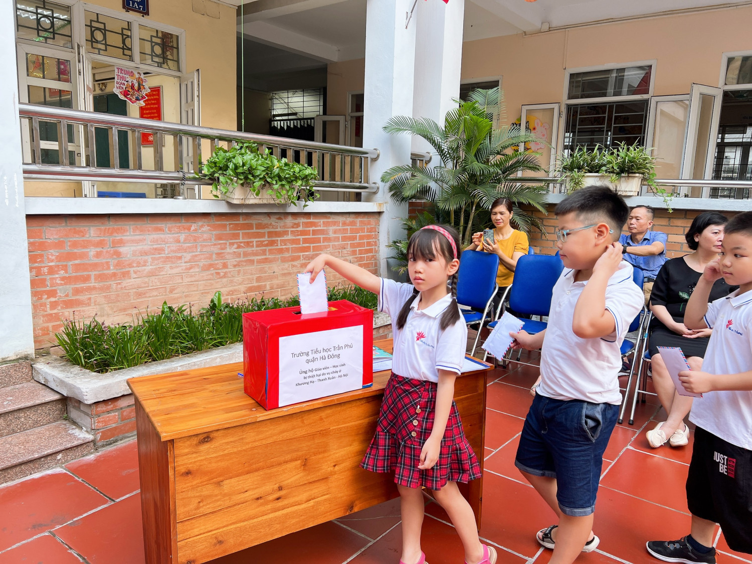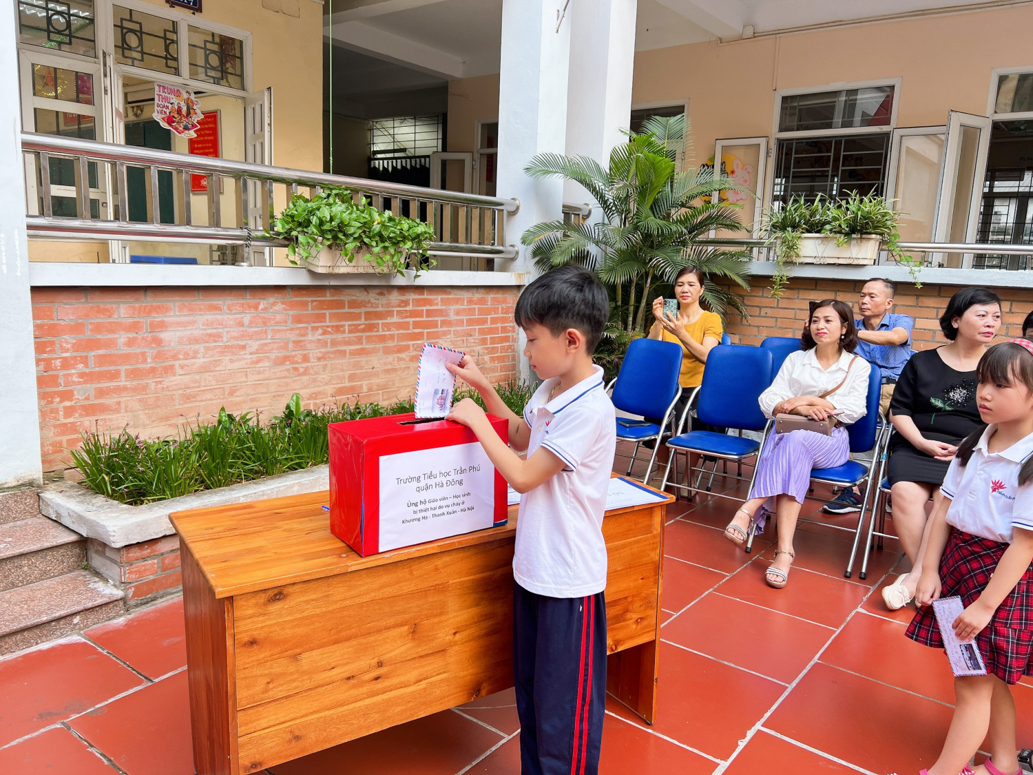 Trường tiểu học Trần Phú tổ chức ủng hộ vụ cháy Chung cư Khương Hạ, Hà Nội.