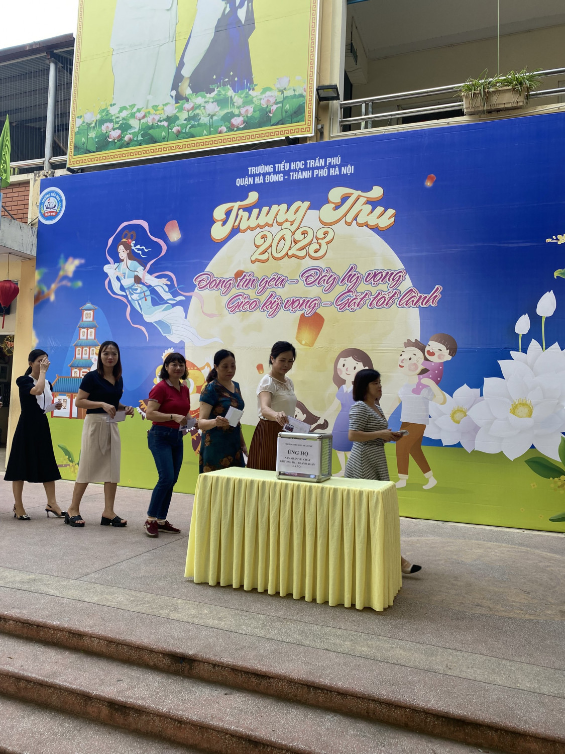 Thực hiện lời kêu gọi của Ủy ban Mặt trận Tổ quốc Việt Nam quận Hà Đông về việc ủng hộ các nạn nhân bị thiệt hại trong vụ cháy ngày 12/9/2023 tại phường Khương Đình, quận Thanh Xuân. Nhà trường phát động tới HS trên tinh thần tự nguyện. Các thầy giáo, cô giáo và các em học sinh đã thể hiện lòng nhân ái, chia sẻ yêu thương.