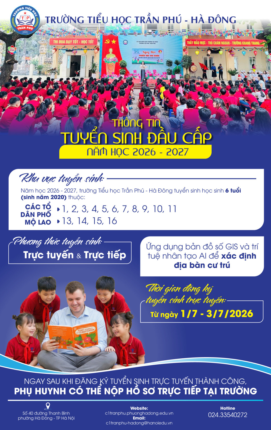 TRƯỜNG TIỂU HỌC TRẦN PHÚ - HÀ ĐÔNG THÔNG BÁO THÔNG TIN TUYỂN SINH NĂM HỌC 2026-2027